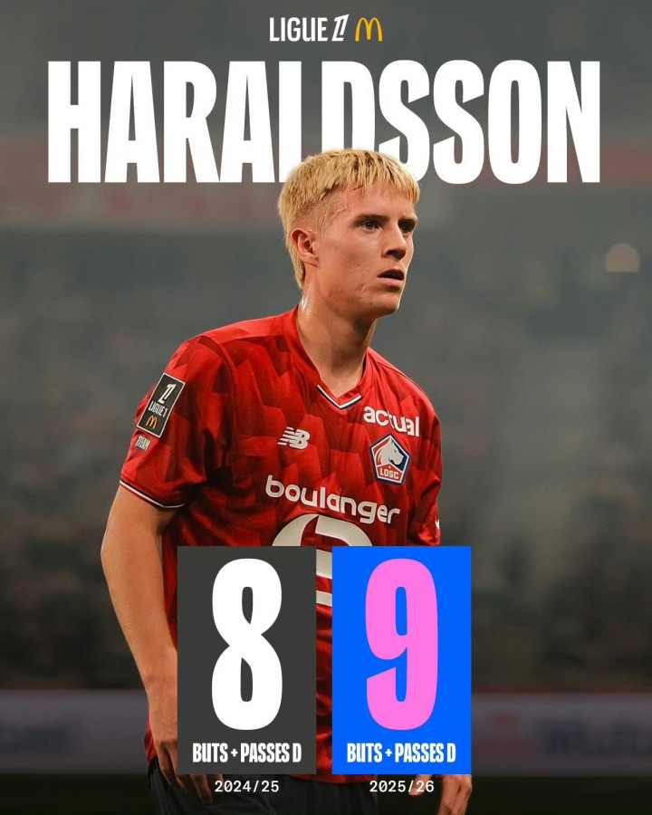 里尔前锋哈康·哈拉尔德松正在经历职业生涯最棒的一个赛季 本赛季他在联赛中已经为球队贡献7球2助
